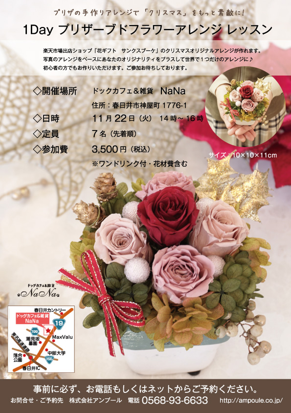 プリザーブドフラワーアレンジに興味がある、一度やってみたかったなど、春日井市近郊のお近くの皆様ぜひ、ご参加ください。